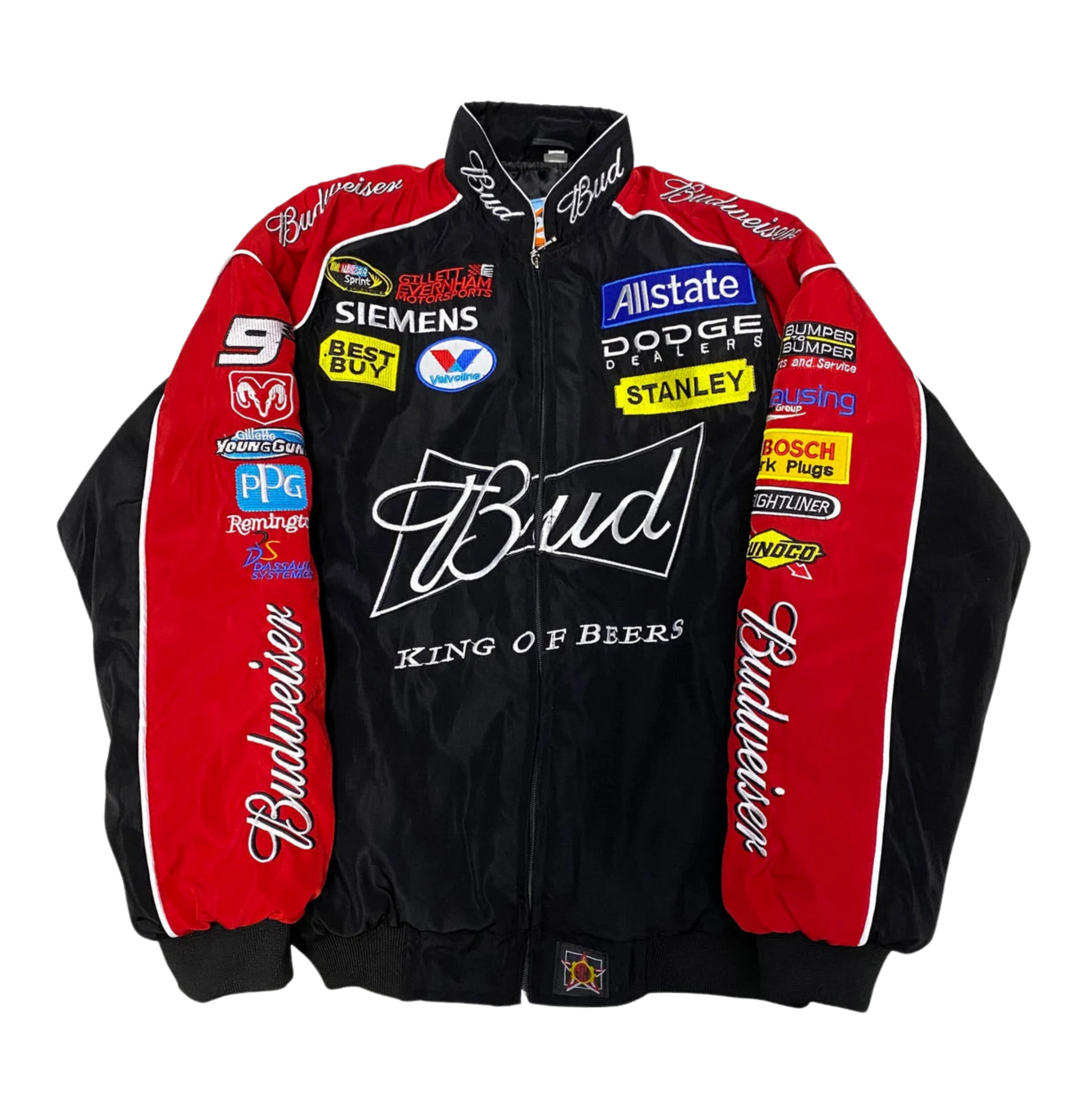 Design: Vintage-F1-Bomberjacke im F1-Stil mit robustem Reißverschluss
