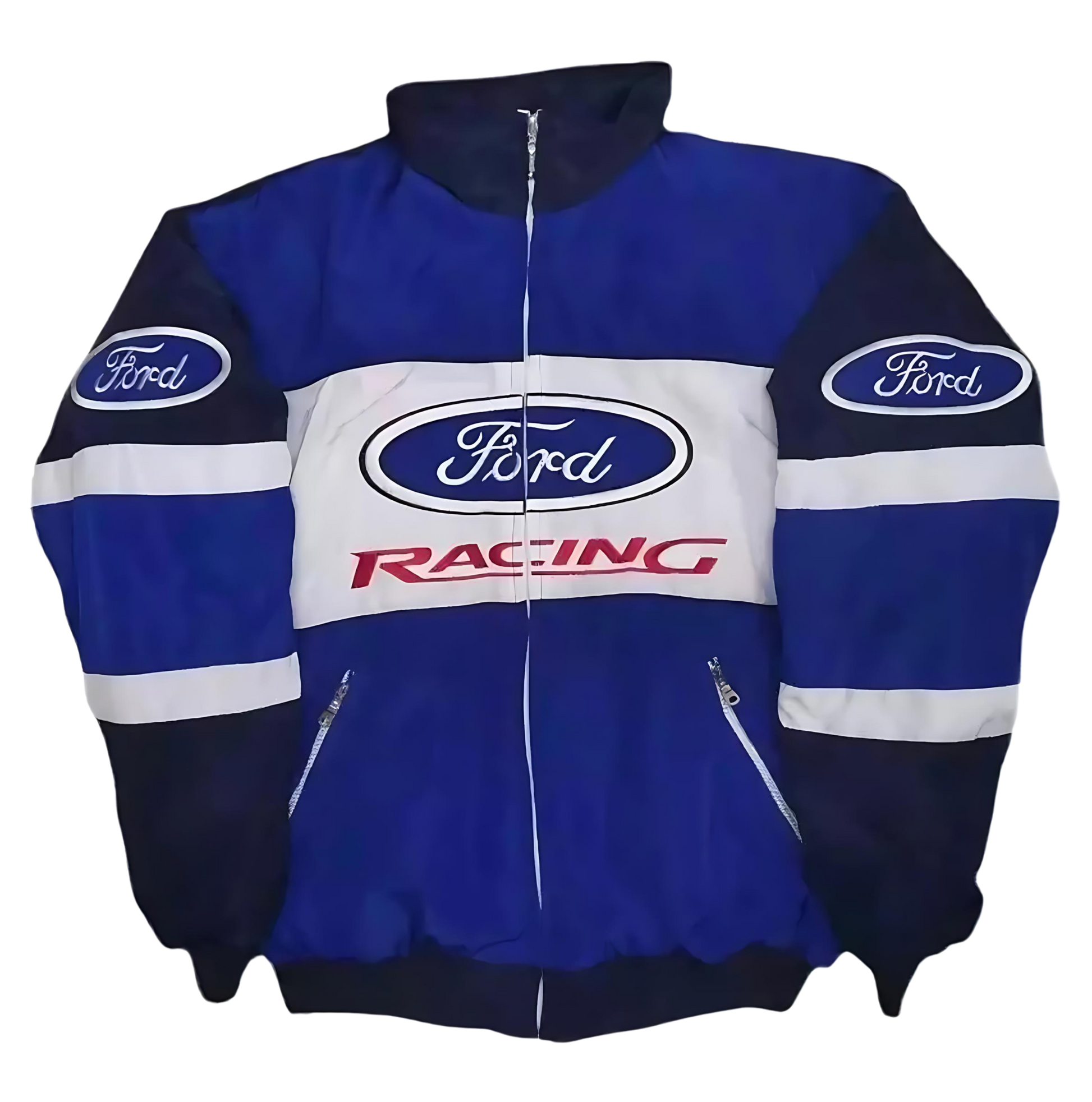 Design: Vintage-F1-Bomberjacke im F1-Stil mit robustem Reißverschluss